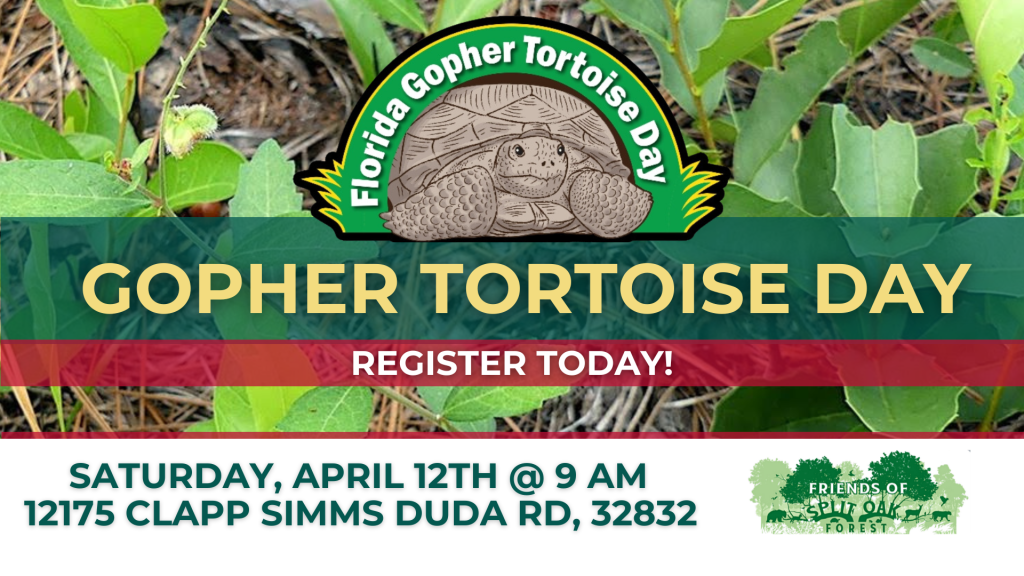 Join the Friends of Split Oak Forest for our Gopher Tortoise Day Festival, a celebration of the proclamation recognizing April 10th as an official day to honor the gopher tortoise, a threatened keystone species vital to Florida’s ecosystem.