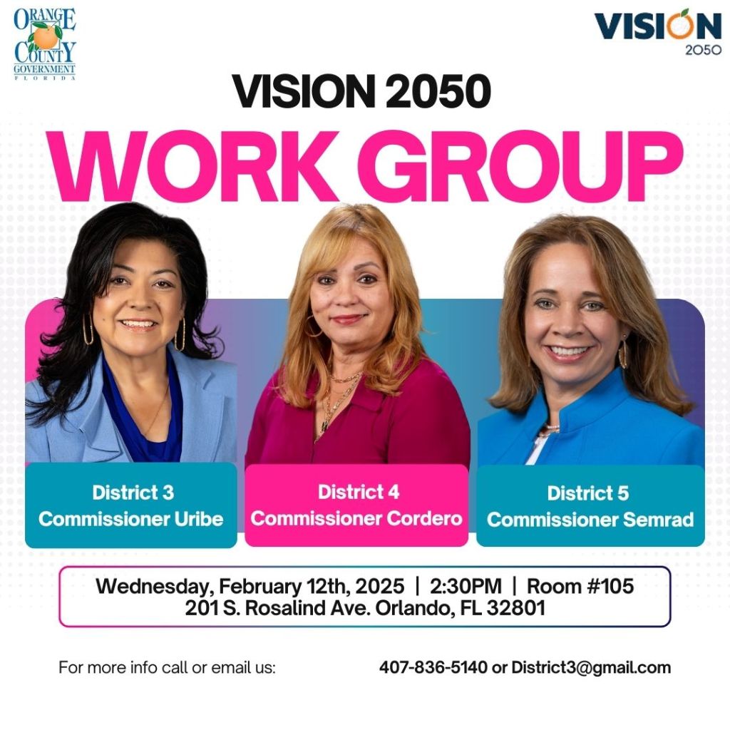 Join Commissioner Semrad, Cordero and Uribe for a Sunshine Meeting working group on Vision 2050.
