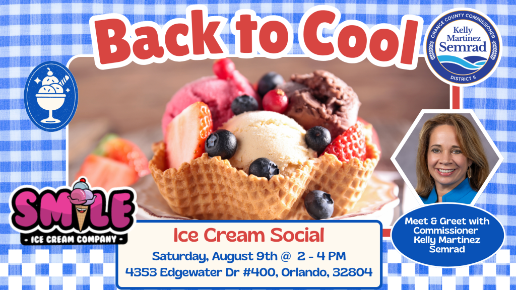 This free community event will be hosted at Smile Ice Cream, a locally owned and family-run business serving up delicious handcrafted treats right in the heart of Orlando. Come cool off, enjoy a sweet treat, and connect with neighbors, students, families, and your District 5 team.