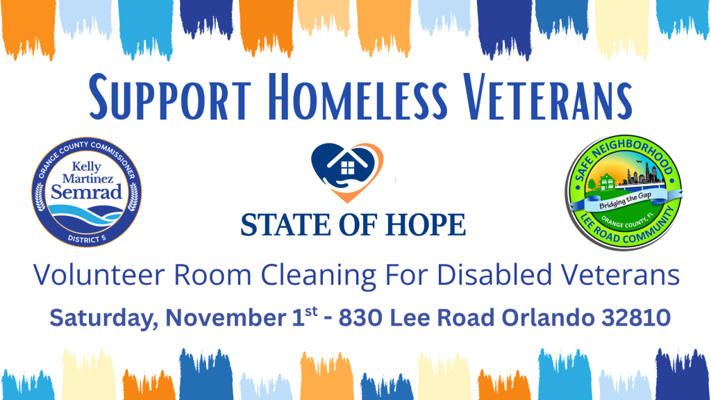 The District 5 Office is partnering with the nonprofit State of Hope to host a Homeless Veterans Support Roundtable at Lee Gardens, an extended-stay hotel that provides housing for veterans in need. This facility is working toward becoming a full-scale emergency shelter, but after being hit by back-to-back hurricanes, it is undergoing significant repairs and is in urgent need of resources. Many veterans arrive with little to nothing—not even a can opener to access donated food. This roundtable is a chance to learn about their needs and see if we can build a team to help!